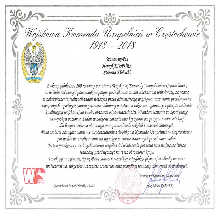 Jubileusz Wojskowej Komendy Uzupełnień w Częstochowie