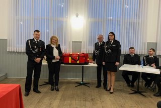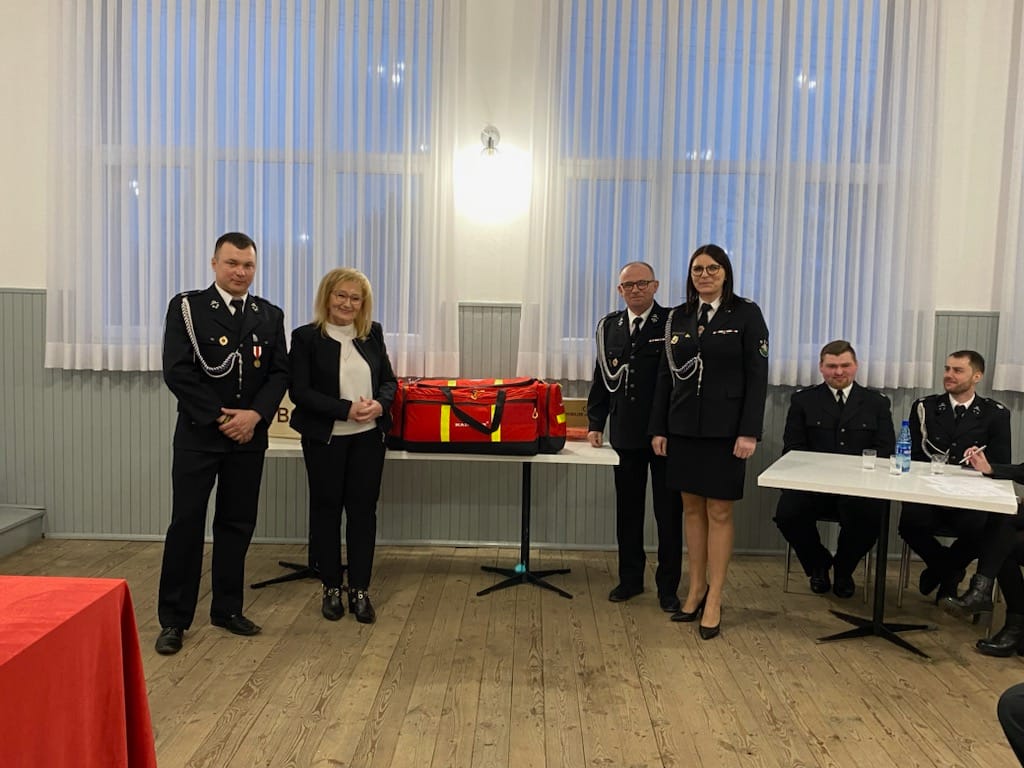 Podczas zebrania Starosta z Wicestarostą, przekazały strażakom torbę medyczną, ważny element sprzętu ratunkowego, zakupiony dla jednostki przez Starostwo Powiatowe w Kłobucku.