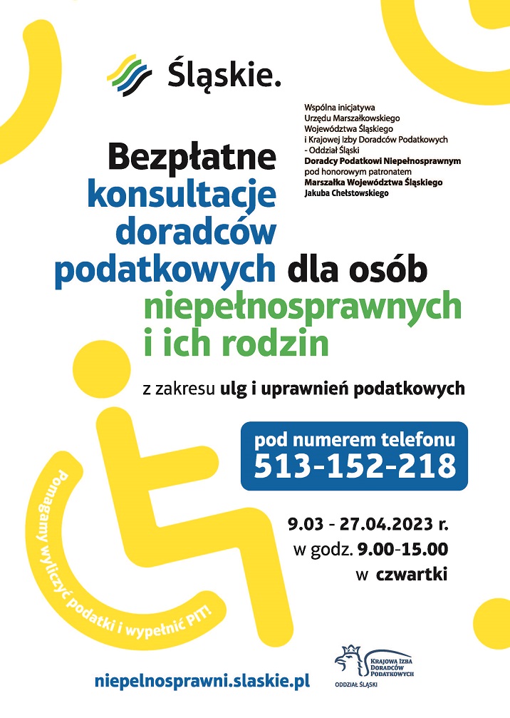 Doradcy podatkowi, członkowie Krajowej Izby Doradców Podatkowych, po raz kolejny angażują się pro publico bono w akcję udzielania porad i pomocy przy przygotowywaniu rocznych zeznań podatkowych dla osób z niepełnosprawnością i ich rodzin. Osoby zainteresowane otrzymają bezpłatną poradę z zakresu sporządzenia PIT za 2022 rok oraz możliwości skorzystania z ulg podatkowych.