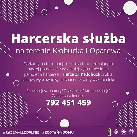 Wszystko po to, aby osoby najbardziej narażone na zachorowanie nie musiały bez potrzeby opuszczać swoich mieszkań i domów. W związku z nadzwyczajną sytuacją harcerze mogą pomóc osobom zamieszkałym w Kłobucku i Opatowie skąd sami pochodzą, aby uniknąć przemieszczania środkami komunikacji i dbać o swoje bezpieczeństwo.