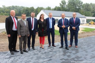 Przewodniczący Sejmiku Województwa Śląskiego Stanisław Gmitruk, Wicemarszałek Stanisław Dąbrowa oraz Starosta Henryk Kiepura odwiedzili budowę Centrum Usług Społecznych w Kłobucku.