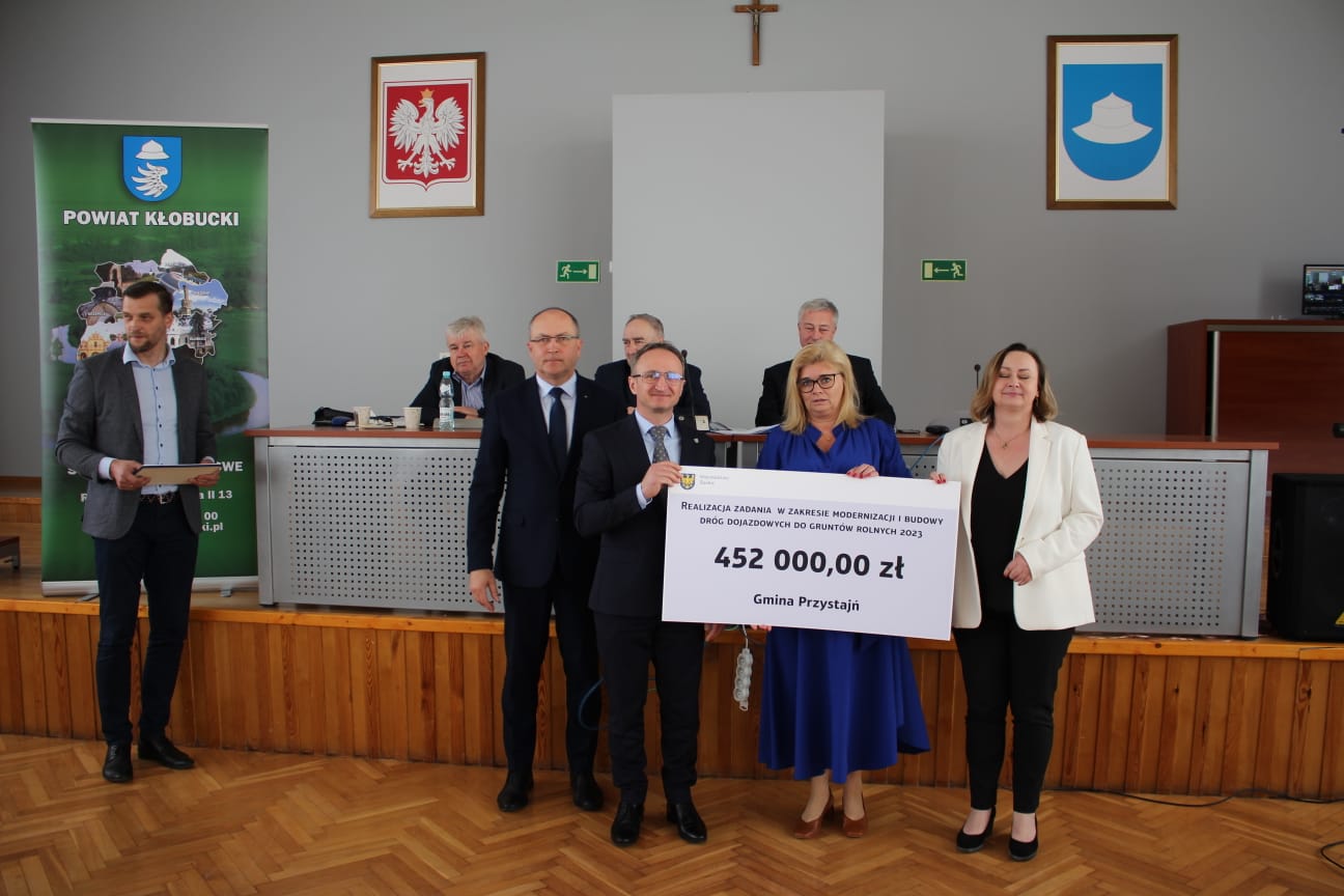 Ponad 450 tysięcy złotych dla Gminy Przystajń. Podczas obrad Rady Powiatu Kłobuckiego Członek Zarządu Województwa Śląskiego Grzegorz Boski wraz ze Starostą Powiatu Kłobuckiego Henrykiem Kiepurą przekazali symboliczny czek dla zadania : droga dojazdowa do pól relacji Michalinów Mrówczak. To kolejne środki z Urzędu Marszałkowskiego jakie trafiły do gminy z terenu Powiatu Kłobuckiego. Podczas sesji Starosta Henryk Kiepura podziekował Panu Marszałkowi Grzegorzowi Boskiemu za dobrą współpracę.
