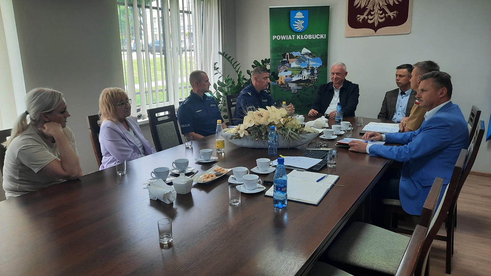 Na spotkaniu omówiono podjęte działania przez Komendę Powiatową Państwowej Straży Pożarnej w Kłobucku, Ochotnicze Straż Pożarne z terenu powiatu kłobuckiego, Komendę Powiatową Policji w Kłobucku, Wydział Spraw Obywatelskich i Zarządzania Kryzysowego Starostwa Powiatowego w Kłobucku i inne służby w związku z dużą ilością zdarzeń w tych dniach podczas, których w wyniku silnych wichur i opadów deszczu zostały zerwane bądź uszkodzone dachy budynków mieszkalnych i gospodarczych, powalone drzewa, zerwane linie w wyniku złamanych słupów energetycznych, zerwane trakcje PKP, gdzie z pociągu ewakuowano ok. 120 osób, powalone drzewa na samochody i inne uszkodzenia. Ponadto dostarczano agregaty prądotwórcze do osób znajdujących się pod respiratorami i aparatami tlenowymi w warunkach domowych.