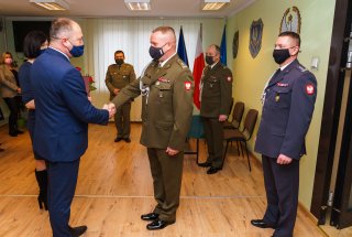 W dniu 28 stycznia 2021 r. w Wojskowej Komendzie Uzupełnień w Częstochowie odbyło się uroczyste pożegnanie ppłk. Adriana KLIMKA, w związku z jego nowym przydziałem służbowym. Podziękowania za owocną i harmonijną współpracę, zaangażowanie i życzliwość w kontaktach z samorządem Powiatu Kłobuckiego, przez minione 4 lata, a także życzenia sukcesów w dalszej służbie, przekazał ustępującemu Komendantowi - Starosta Kłobucki Henryk Kiepura.