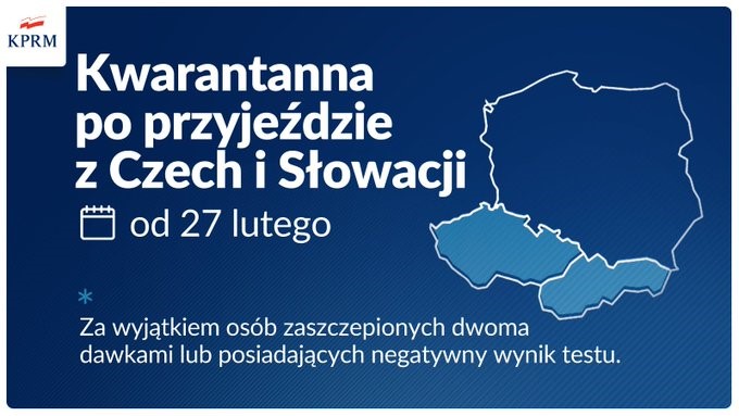 Kwarantanna po przyjeździe z Czech i Słowacji od 27 lutego – wyjątek dla zaszczepionych i osób z negatywnym wynikiem testu