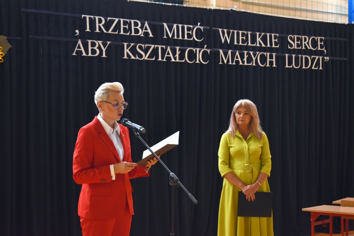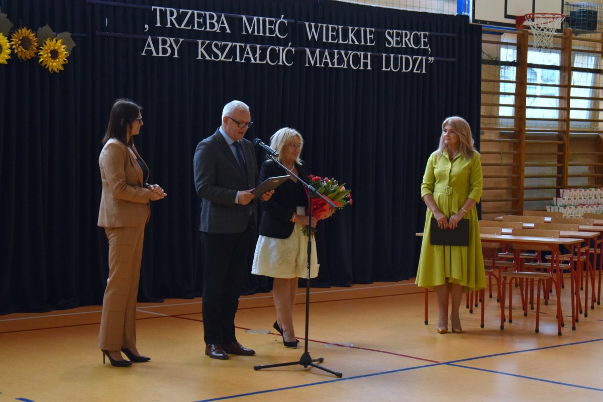 Starosta Kłobucki Dariusz Pilśniak wraz z reprezentującymi Zarząd Powiatu Anetą Kiepurą i Zdzisławą Kall, uczestniczyli w czwartek, 10 października 2024 roku, w uroczystej akademii z okazji Dnia Edukacji Narodowej w Szkole Podstawowej im. Stanisława Ligonia w Truskolasach.