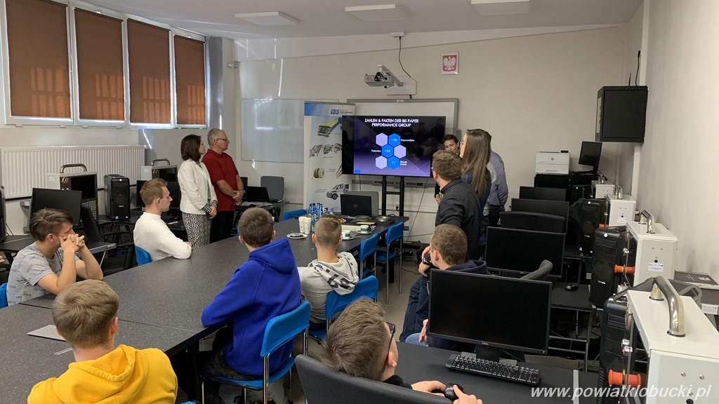 Kilkuosobowa delegacja z austriackiej firmy IBS Paper Performance Group, odwiedziła 11 października Zespół Szkół na Zagórzu w Kłobucku. Na czele grupy stał syn założyciela, prezesa i właściciela Mark Bartelmuss, odpowiedzialny w firmie za innowacje Prócz niego w grupie znaleźli się jeszcze Verena Rischway reprezentująca administrację i dział kadr oraz Robert Draschl - kierownik produkcji. Uczestnikiem spotkania a jednocześnie inicjatorem wizyty był absolwent szkoły Łukasz Piekarski zatrudniony aktualnie w austriackiej firmie oraz Renata Kotula.