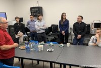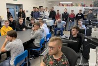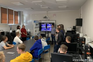 Na koniec wizyty w szkole, goście z Austrii zwiedzili warsztaty szkolne, szczególną uwagę poświęcając pracowniom mechanicznym. Obejrzeli m.in. obróbkę na frezarce CNC.