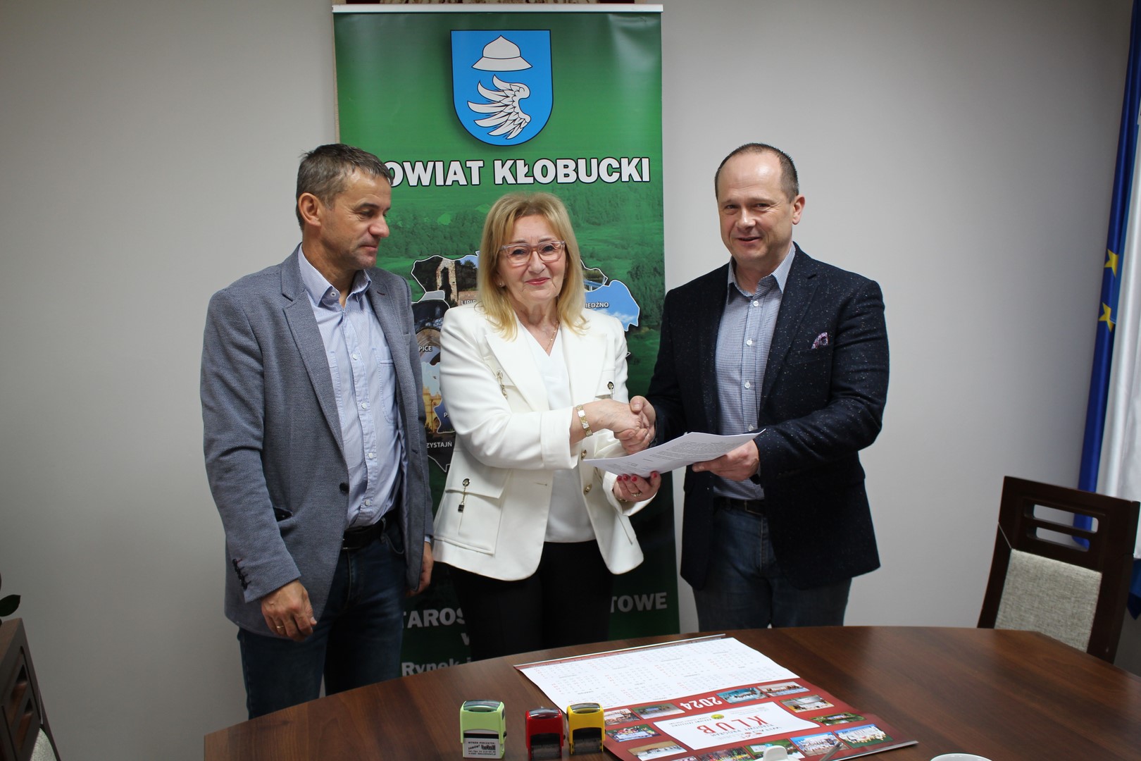 Starosta Powiatu Kłobuckiego Zdzisława Kall i Wicestarosta Aneta Kiepura podpisały w siedzibie Starostwa Powiatowego w Kłobucku, umowę na dofinansowanie działania Powiatowego Zrzeszenia Ludowe Zespoły Sportowe.