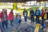 Niedzielne popołudnie 10 października 2021 r. artyści - uczestnicy Pleneru Malarskiego „Powiat Kłobucki – Okno na świat”, spędzili aktywnie przy wspólnym ognisku i pieczeniu kiełbasek.