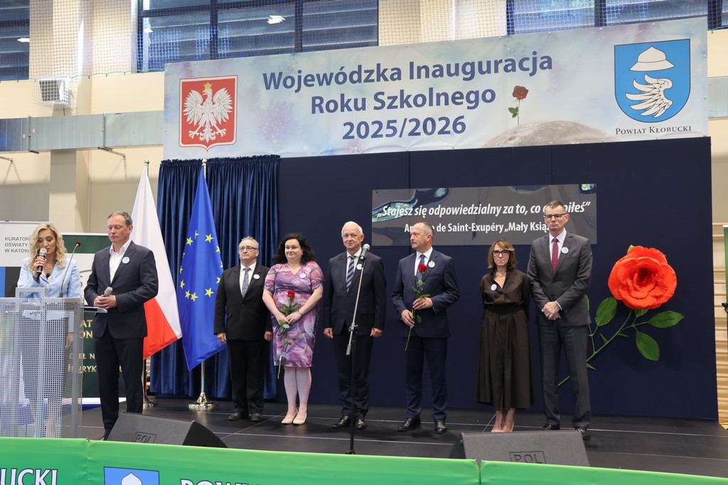 W dniu 1 września br. w Hali Sportowej Powiatu Kłobuckiego w Zespole Szkół Nr 1 im. Jana Kilińskiego w Kłobucku odbyła się Wojewódzka Inauguracja Roku Szkolnego 2025/2026. Organizatorami wydarzenia byli: Pani Aleksandra Dyla Śląska Kuratorium Oświaty, Powiat Kłobucki oraz Fundacja Rozwoju Systemu Edukacji w Warszawie. Partnerem oraz gospodarzem Inauguracji była „kłobucka jedynka”.