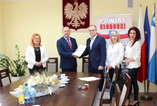 Starosta Kłobucki Henryk Kiepura i Wicestarosta Zdzisława Kall, z kontrasygnatą Skarbnika Powiatu Katarzyny Kurowskiej, podpisali w siedzibie Starostwa Powiatowego umowę z Bankiem Spółdzielczym w Kłobucku. Bieżąca umowa, jest kolejną, którą Powiat Kłobucki zawarł z kłobuckim BS, realizując zasadę wspierania lokalnego biznesu. Umowa powierza BS w Kłobucku kompleksową obsługę bankową budżetu Powiatu Kłobuckiego i innych rachunków samorządu powiatowego na okres 5 lat do 31 marca 2024 roku. Ze strony BS w Kłobucku umowę podpisali Prezes Zarządu Tomasz Jaworski wraz z Z-cą Prezesa Beatą Popęda.