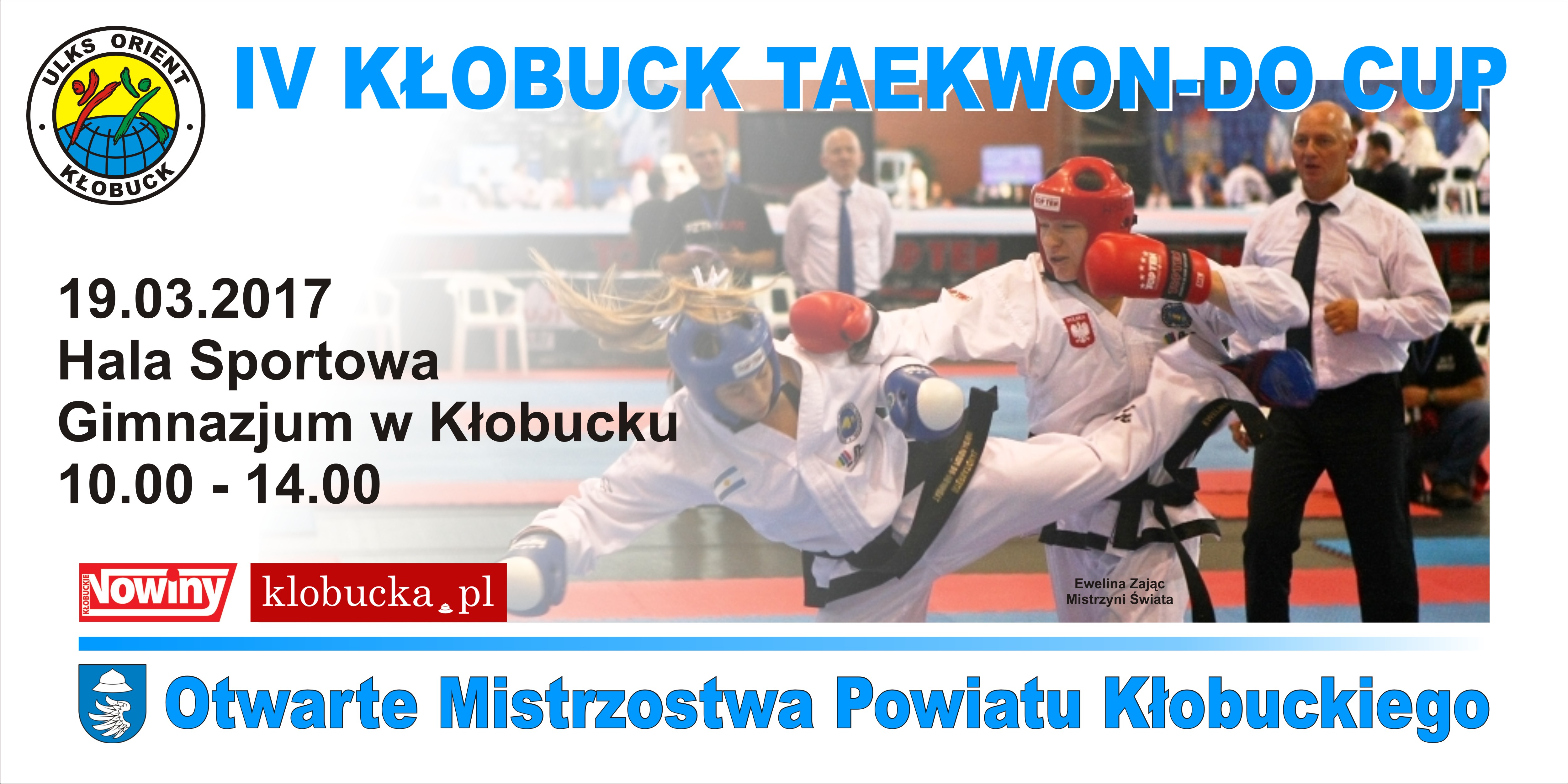 19 marca 2017 r. w Hali Sportowej Kłobuckiego Gimnazjum odbędzie się czwarta edycja Otwartych Mistrzostw Powiatu Kłobuckiego Skrzatów, Kadetów, Młodzików "IV Kłobuck Taekwon-Do Cup".
